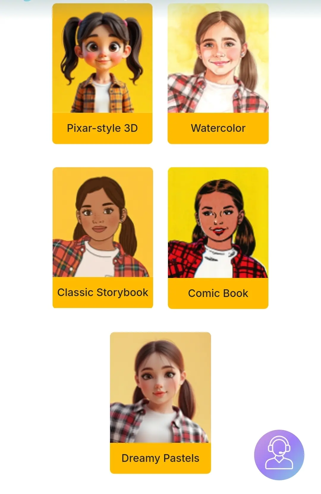 1) Elige el «Estilo del Personaje» (Pixar, Comic, Clasico etc.)